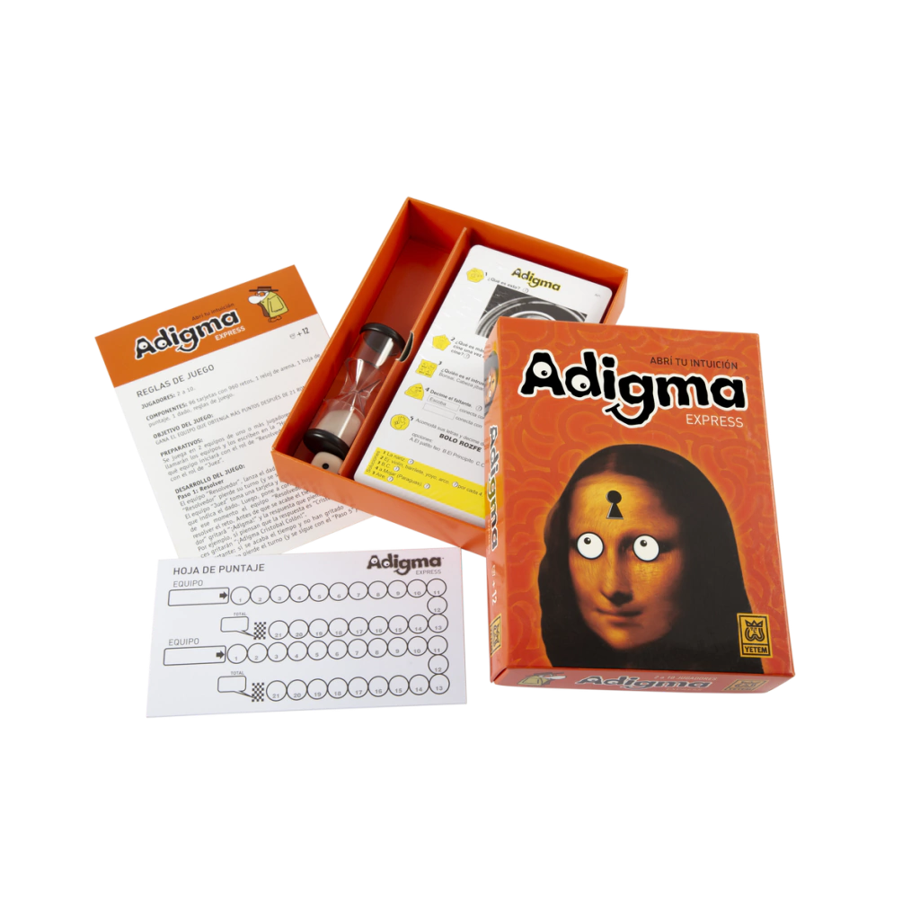 Adigma Express es un juego de mesa para jugar en 2 equipos de uno o más jugadores, donde solo necesitás tus habilidades para resolver los retos y así obtener los puntos para ganar.