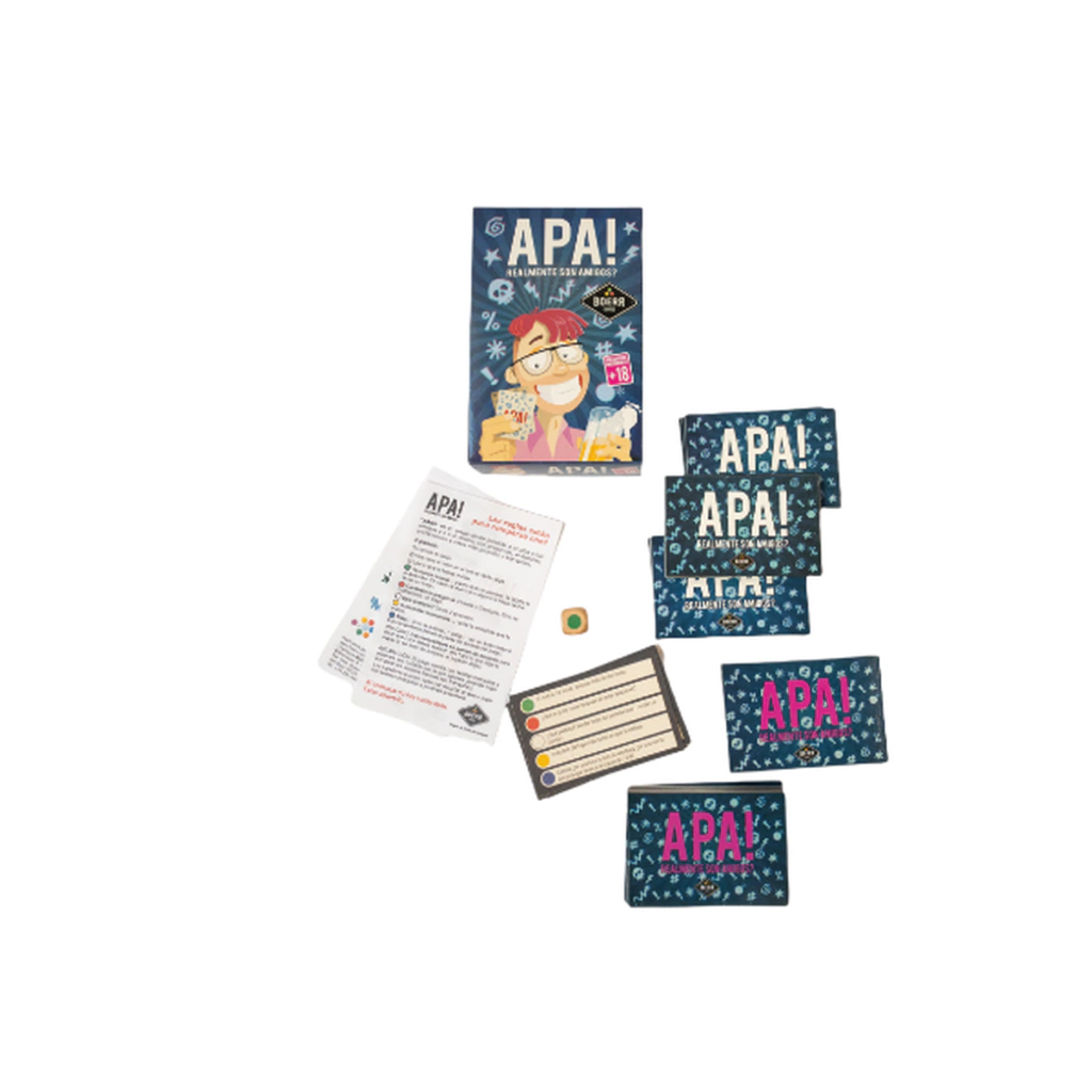 Apa! es un juego donde pondrás a prueba a tus amigos a tráves de preguntas, anécdotas, preferencias y retos picantes y divertidos. Un conjunto de más de 600 preguntas donde amigos y conocidos se darán cuenta de lo frágil que es su relación.