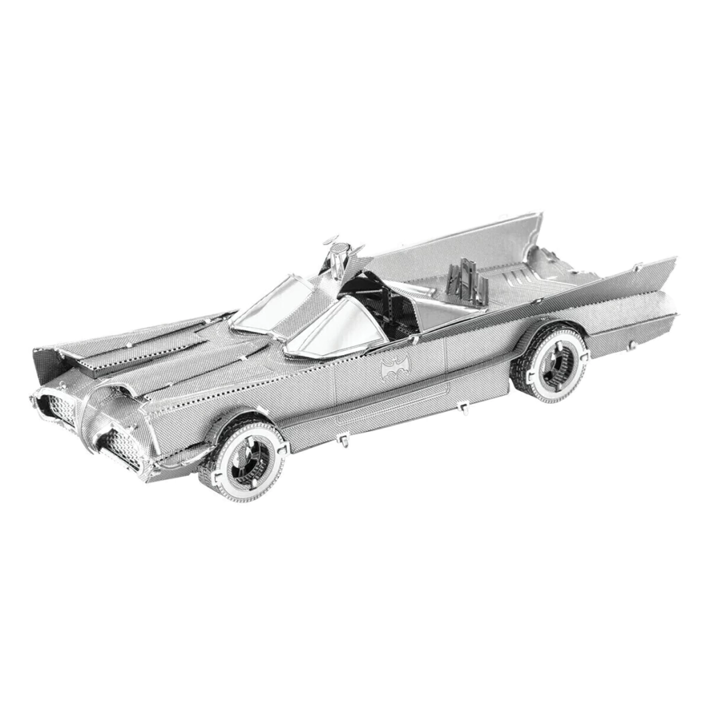 El Batimóvil de 1966, de la serie de televisión en acción real, comenzó su vida como un auto conceptual de Ford llamado Lincoln Futura. La carrocería del Futura fue fabricada por Ghia, de Italia, cuyos artesanos martillaban los paneles del auto sobre troncos y tocones de árboles tallados como moldes para crear el elegante coche con forma de manta. El baúl extra grande del Batimóvil contiene diversos equipos para combatir el crimen y tiene suficiente espacio para acomodar cómodamente a ocho personas. El parabrisas es a prueba de balas. Y, por supuesto, el Batimóvil no carece de sus útiles artilugios, que incluyen el cortacadenas montado en la nariz, láseres, cohetes, un teléfono a bordo, radar, monitor en el tablero, computadora a bordo y baliza policial, entre otros.
