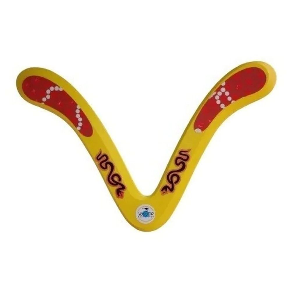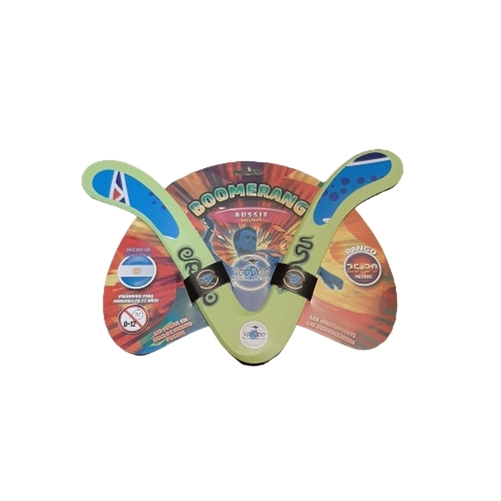 El Boomerang Aussie está diseñado para lanzadores diestros y es adecuado para niños y adultos. Requiere mayor rotación y potencia de lanzamiento que un boomerang tradicional y es un boomerang muy seguro para lanzar, estable al viento y de fácil atrapada.