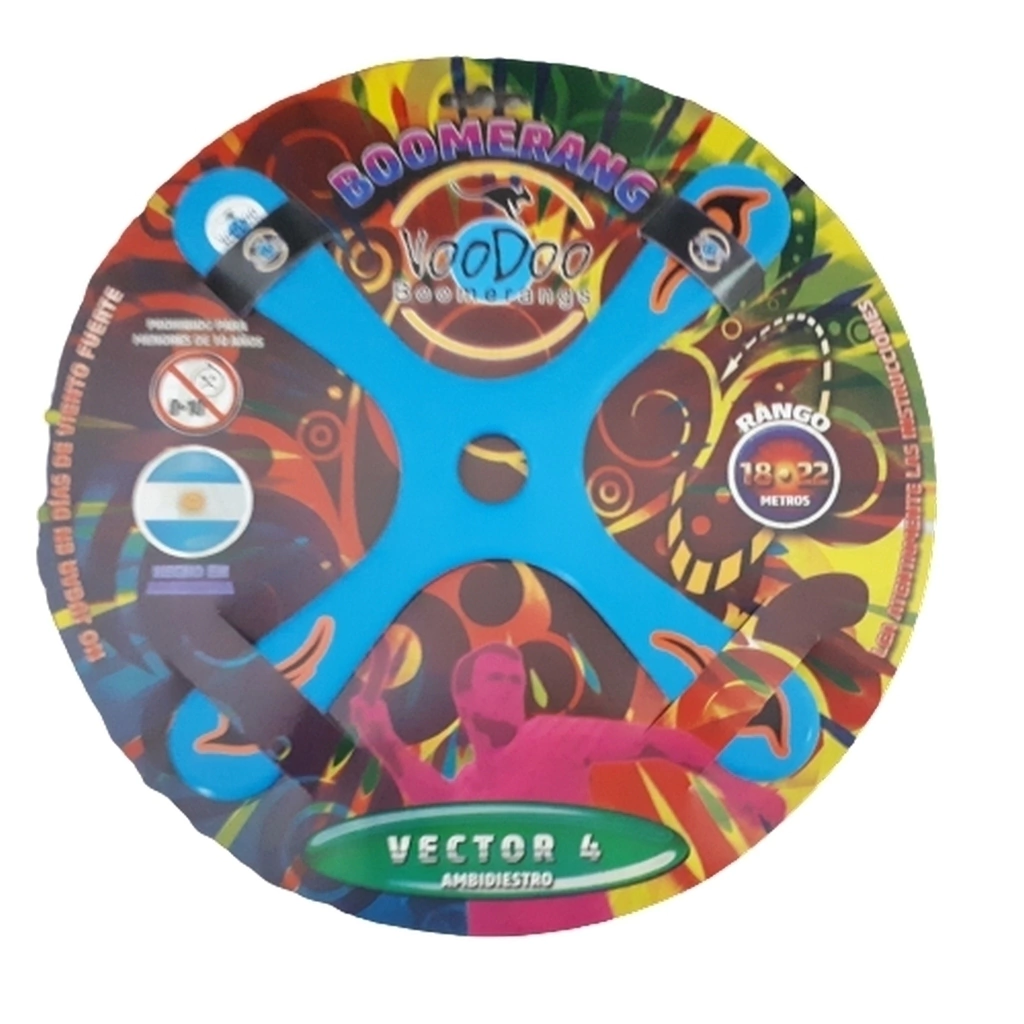 El boomerang Vector 4 está diseñado para lanzadores diestros y zurdos, siendo necesaria su regulación. Un modelo muy fácil de lanzar y de gran precisión. Permite modificar el vuelo en distancia y altura.