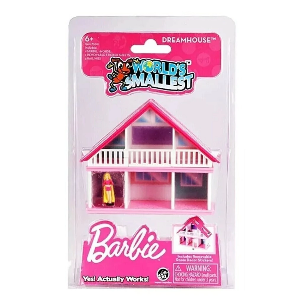 Incluye la casa, 1 mini Barbie (al azar, no es posible elegirla), 2 planchas de stickers y 3 barandas para la casa.