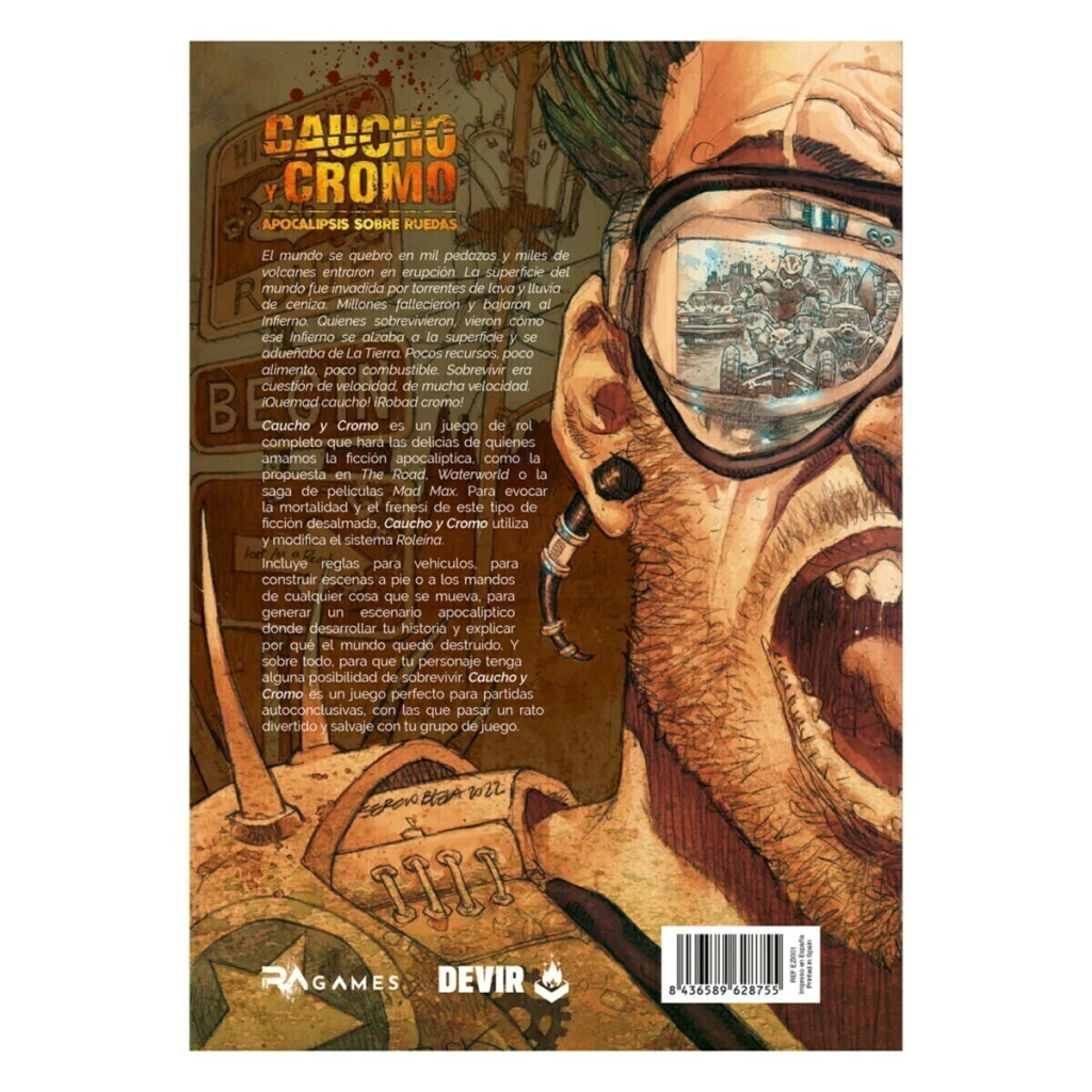 Caucho y Cromo es un juego de rol completo de ficción apocalíptica. Para evocar la mortalidad y el frenesí de este tipo de ficción desalmada, Caucho y Cromo utiliza y modifica el sistema Roleína.