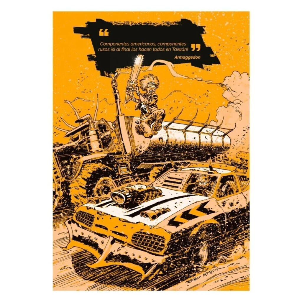 Incluye reglas para vehículos, para construir escenas a pie o a los mandos de cualquier transporte que se mueva, para generar un escenario apocalíptico donde desarrollar tu historia y explicar por qué el mundo quedó destrozado. Y sobre todo, para que tu personaje tenga alguna posibilidad de sobrevivir.