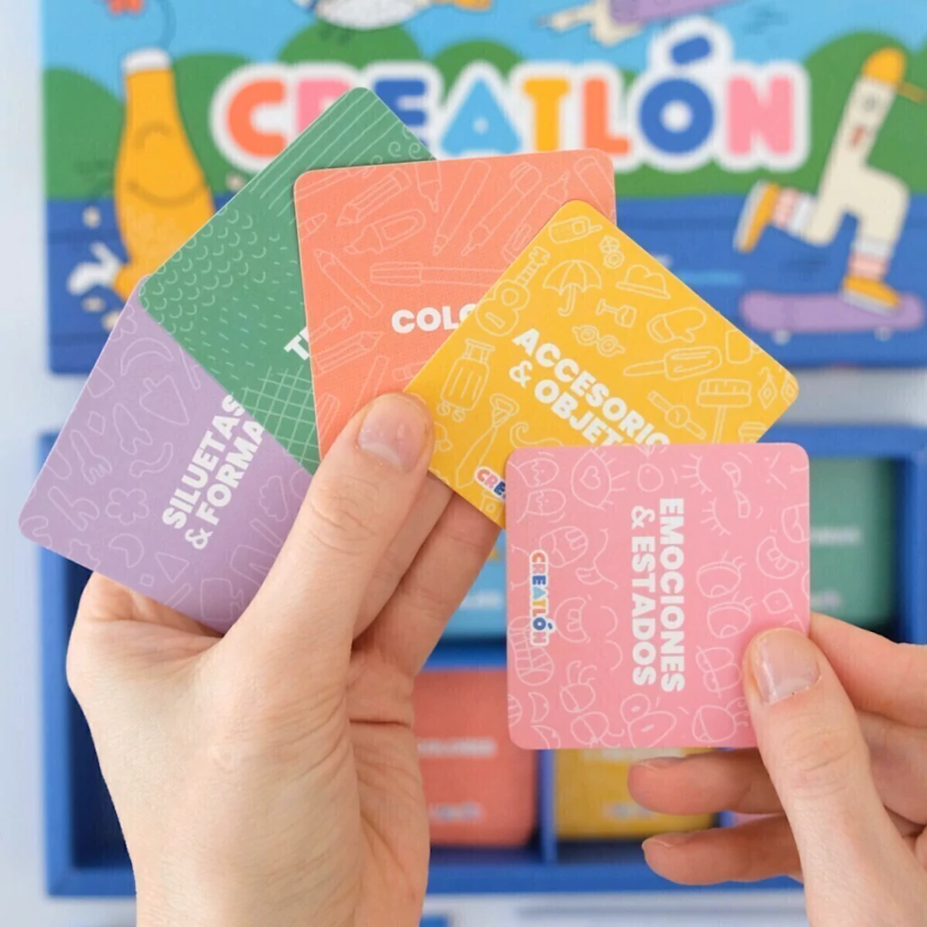 Con la carta de Personaje en juego, deberás usar la mayor cantidad de Cartas de Recursos posibles para darle vida a tu personaje antes que tus contrincantes. Hay 250 cartas con 5 categorías de recursos creativos: Emociones y Estados, Colores, Accesorios y Objetos, Texturas, Siluetas y Formas. Pero eso no es todo, a medida que vayas avanzando en el tablero las cosas se complicarán con las Cartas de Obstáculos.