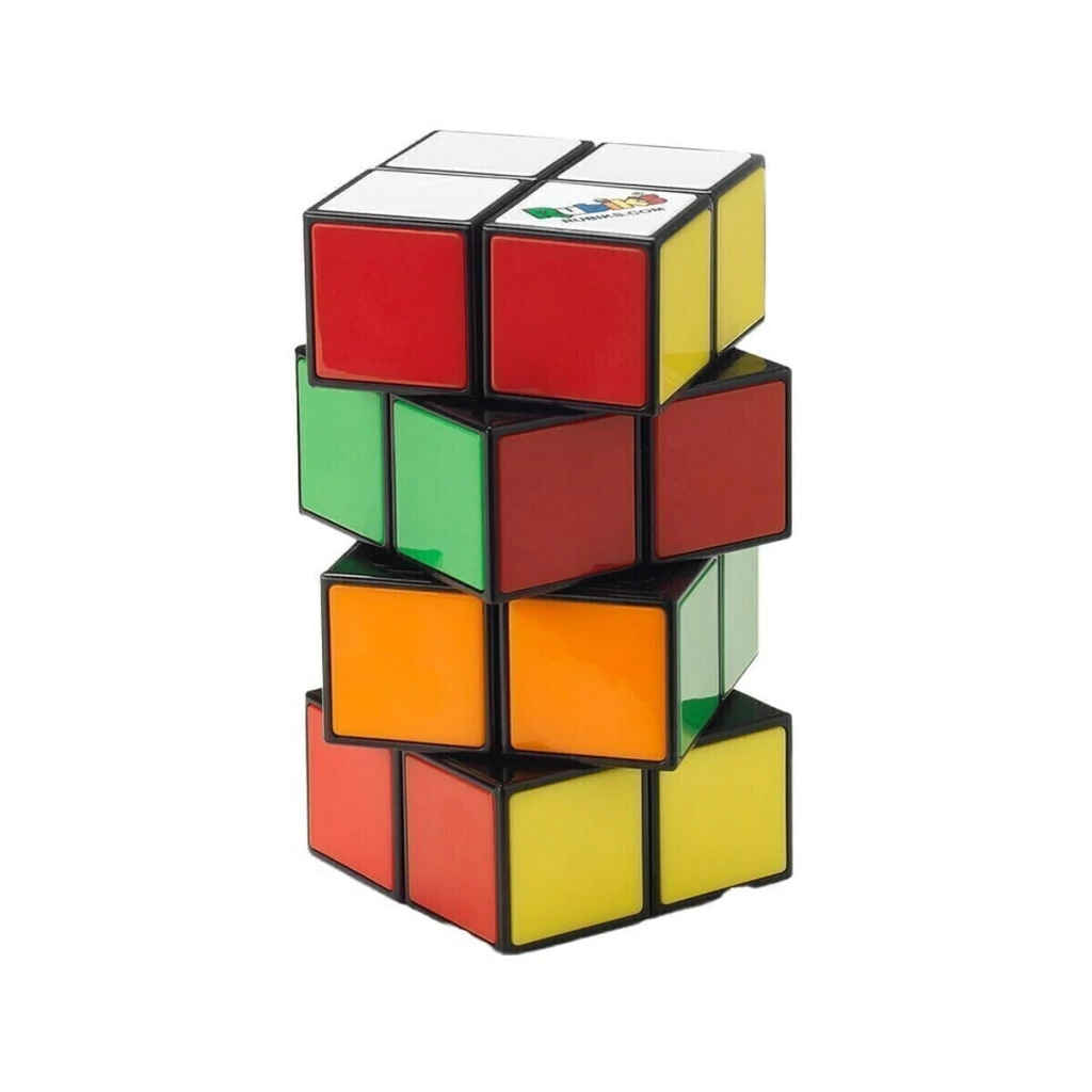El Rubik's Tower es un cuboide 2x2x4. Es como si fueran dos mini cubos de Rubik 2x2 que giran alrededor de un eje central, permitiendo que el rompecabezas cambie de forma con cada giro.