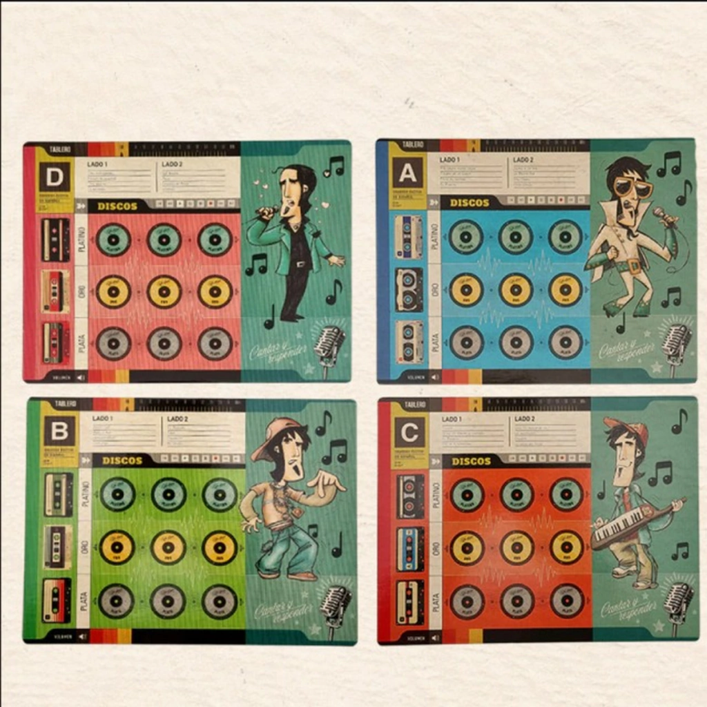 Cada uno de los 4 tableros es una sala de música, y quien primero consiga los 3 discos de Platino será el ganador.