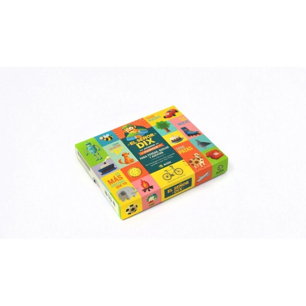 El Señor Dix es un juego de cartas de asociación. Tiene dos mazos: uno de dibujos y otro de cualidades. Para jugar con chicos a partir de 4 años , y con distintos niveles de dificultad, se deberán asociar los dibujos con una o más características para ir acumulando cartas y ganar el juego.