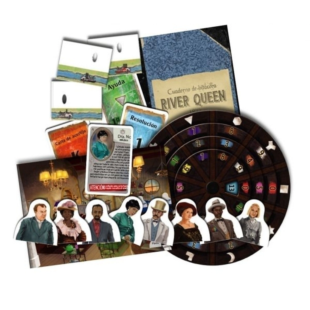 1 disco descodificador, 85 cartas, 3 objetos, 8 fichas de sospechoso, 1 lámina desplegable, 1 cuaderno, 1 manual |
