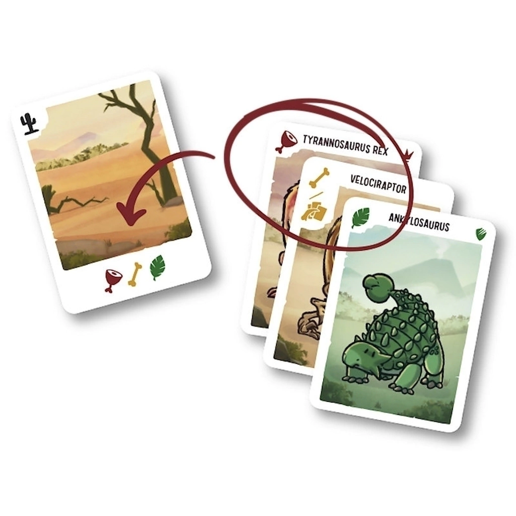 Explorá las 73 cartas de Mundo Perdido y descubrí hasta 23 especies distintas de dinosaurios. Usá sus habilidades para que sobrevivan en "tu terreno" y ponelos a salvo en uno de los 22 entornos seguros que irás descubriendo durante la partida. Pero cuidado, porque cada vez que salves dinosaurios, se producirá un Efecto Mariposa que puede afectar a todos y acelerar el final del juego. El explorador que más dinosaurios haya rescatado cuando el Mundo Perdido se extinga, será el ganador.