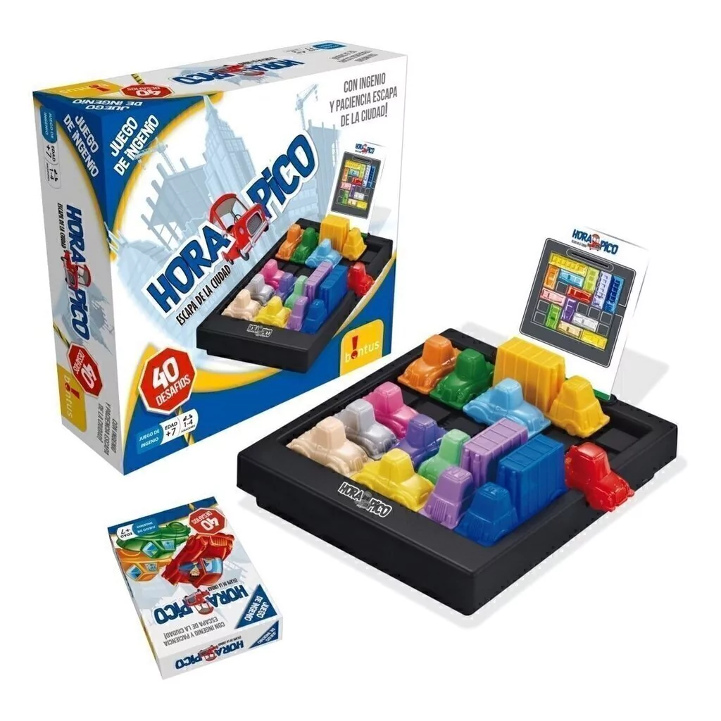 Hora Pico es un juego de ingenio. El objetivo del juego es sacar el auto rojo por la abertura lateral y para eso tenés que ir moviendo los otros autos para ir avanzando, pero tenés que ser muy ingenioso para poder lograrlo.