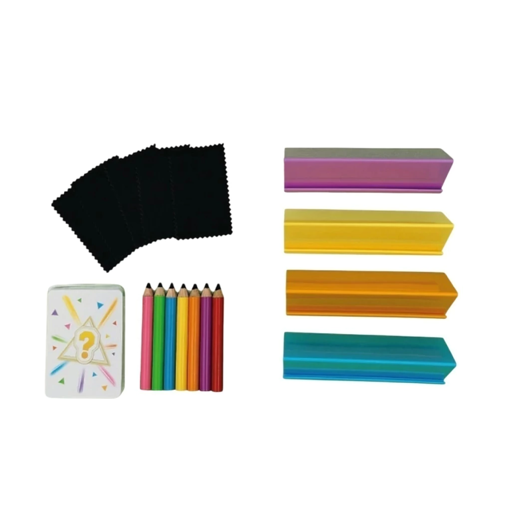 1 reglamento, 110 cartas, 7 atriles, 7 lápices, 7 trapitos |
