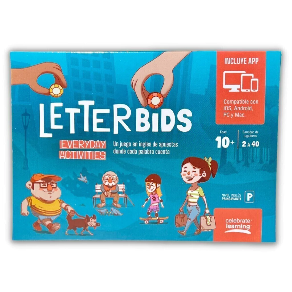 Letter Bids - Everyday Activities es un juego de apuestas en inglés donde los jugadores apuestan letras, escriben oraciones y ganan puntos.