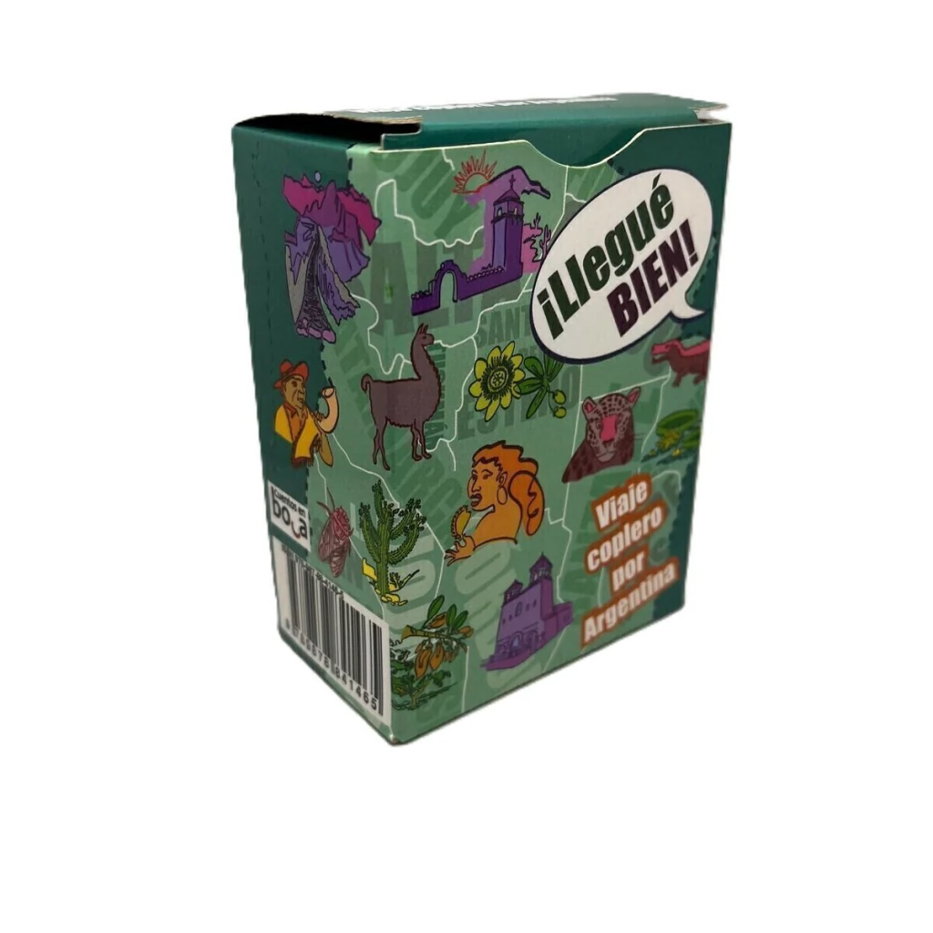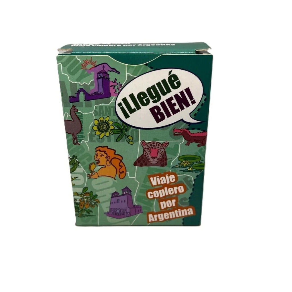 Llegué Bien es un juego que recorre la diversidad patrimonial argentina. Incluye picardías y chanzas folklóricas. Un juego con cartas, ta-te-ti, memoria, rompecabezas.