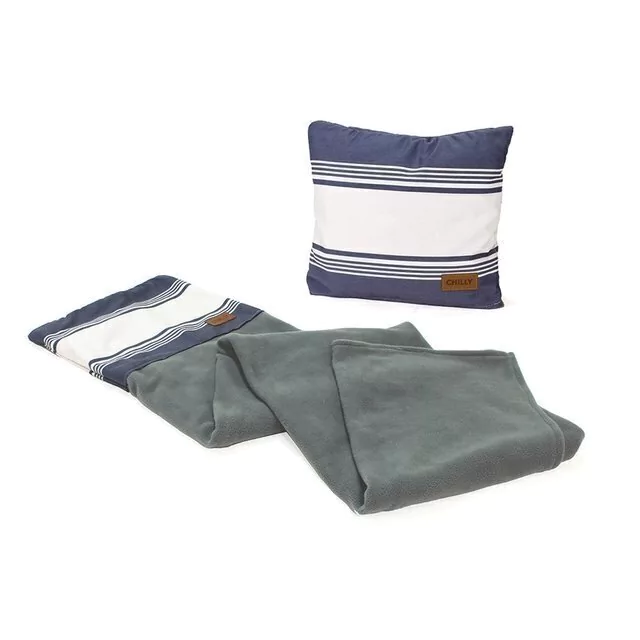 La Manta Chilly es el complemento ideal para la reposera cuando estamos en un día fresco al aire libre. Al desplegarla, metés los pies adentro del almohadón y te cubrís con la manta de polar. Cuando la dejás de usar se autoguarda quedando un almohadón de gabardina estampada, para tenenla siempre a mano en el sillón o en la cama.