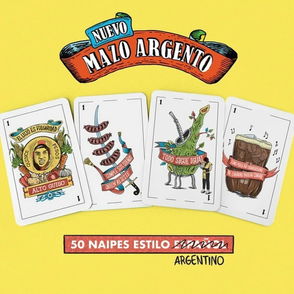 Si existen las cartas españolas, ¿cómo no iban a existir las Cartas Argentinas? Por eso en lugar de copas, espadas, bastos y oros, este mazo tiene fernet, choris, mate y alto guiso.