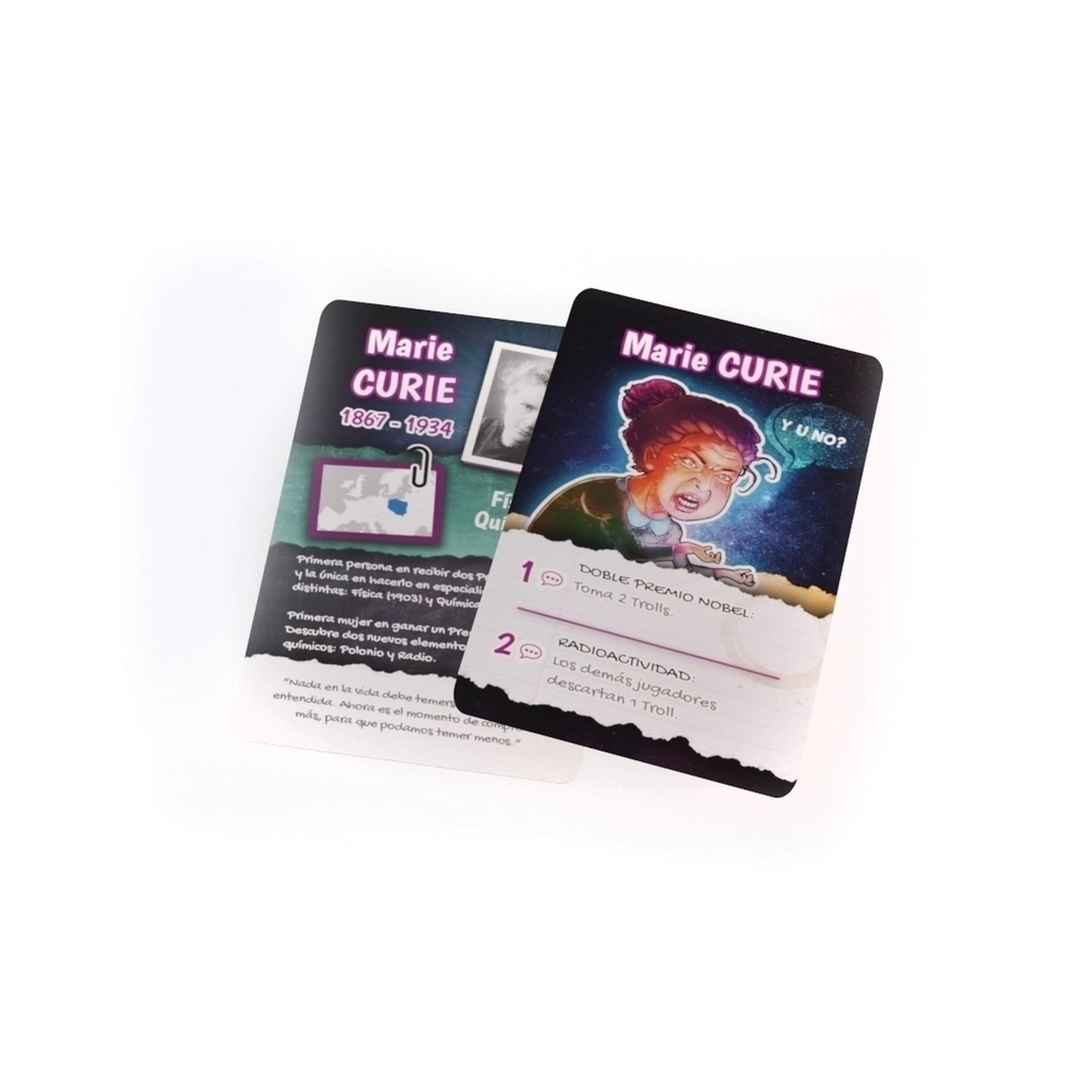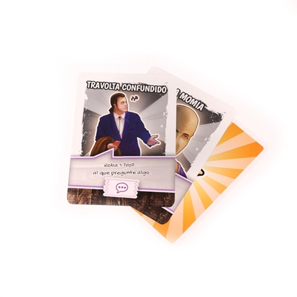 8 cartas de científicos, 32 cartas de memes, 8 cartas de video, 60 cartas trolls, instrucciones |