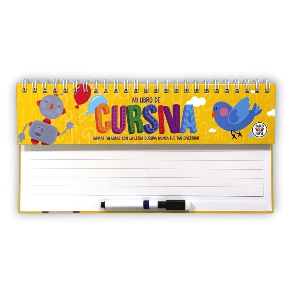 Mi Libro de Cursiva es una herramienta didáctica ideal para que chicos y chicas aprendan a escribir en cursiva de manera libre, creativa y jugando. Rotando las hojas, los niños pueden formar cientos de palabras mientras practican su trazo con el marcador borrable incluido.