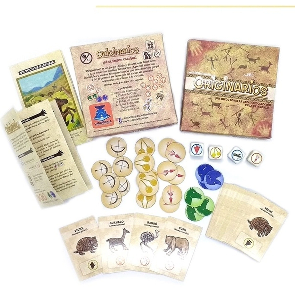 Originarios es un juego rápido y dinámico de fabricación y caza sobre los pueblos Tehuelches. Aprendé sobre sus materiales y modos de supervivencia con este divertido juego y sé el primero en conseguir las cartas de animales necesarias para ganar la partida.