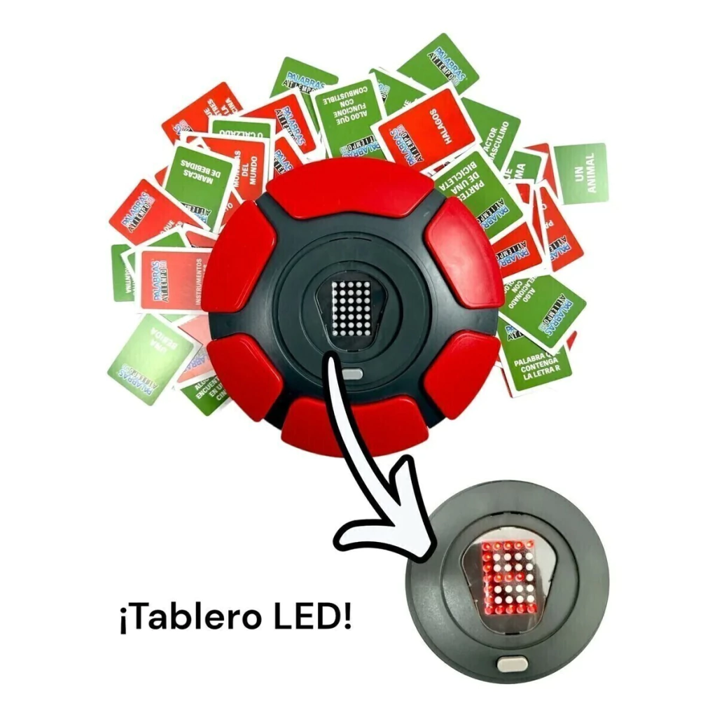 Sacá una tarjeta con un tema, y preparate: el visor te mostrará una letra, y cada jugador deberá decir una palabra que cumpla con ambos requisitos. Cuando todos respondan, ¡la letra cambia y empieza otra ronda!