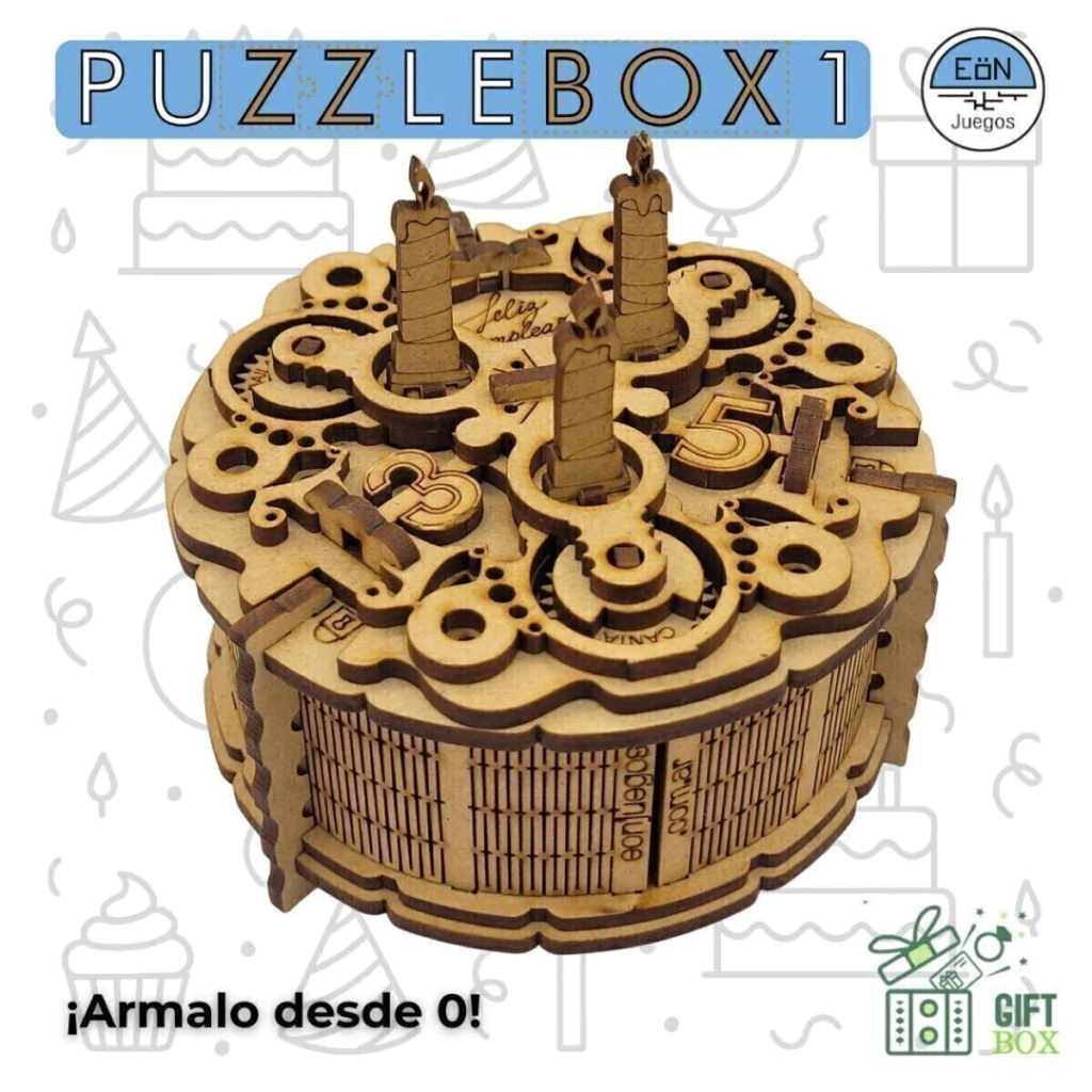 Con piezas troquelables en láminas de madera MDF, su ensamblaje toma aproximadamente 1 hora, ideal para quienes disfrutan de desafíos manuales. Una vez armado, el Puzzle Box 1 te invita a resolver acertijos aptos para todas las edades para abrir un compartimento secreto de 3,5 cm x 9,5 cm, perfecto para guardar un regalo especial.