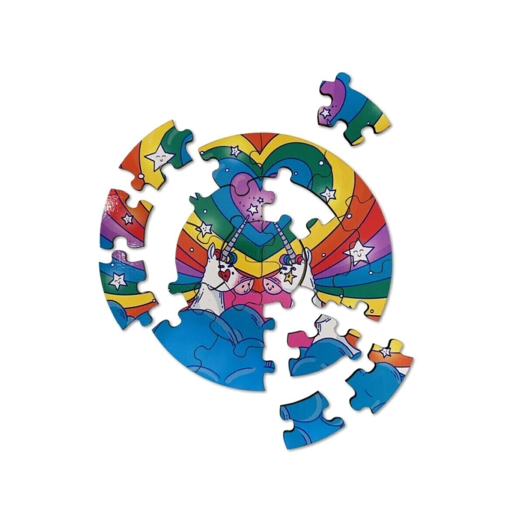 Son 3 rompecabezas circulares de madera. Incluye uno de 39 cm de diámetro de 34 piezas y dos de 20 cm de diámetro de 22 piezas cada uno.