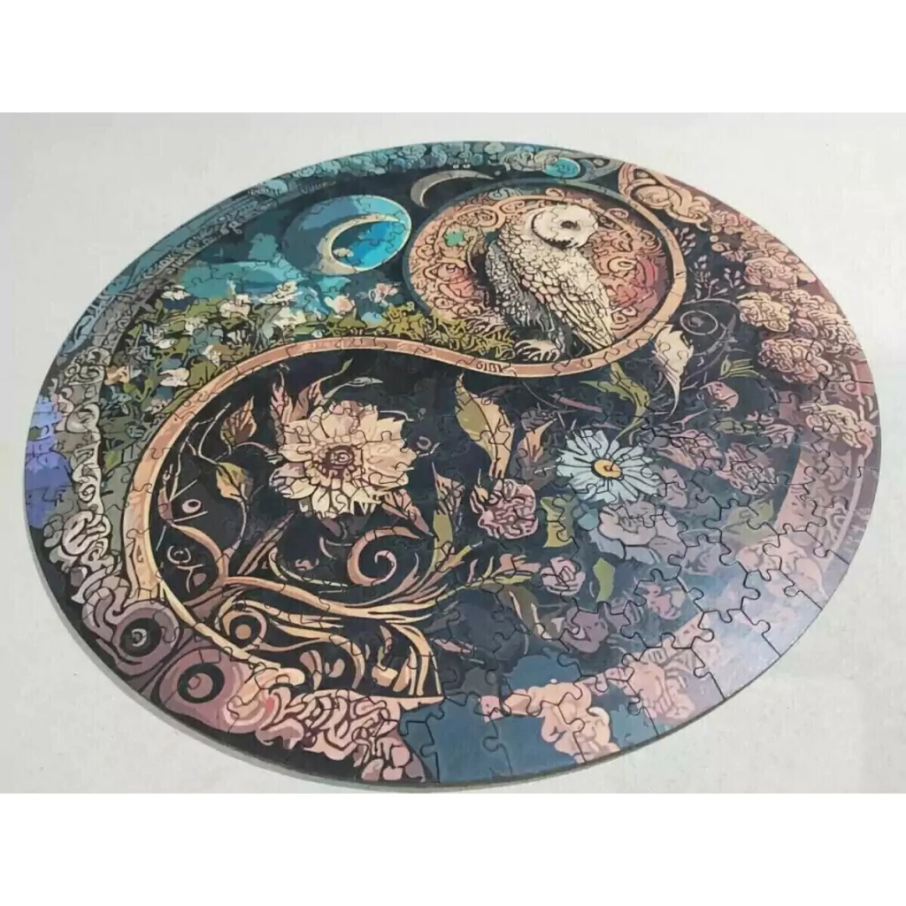 Es un rompecabezas de madera circular de 200 piezas confeccionado en forma artesanal, material fibrofácil de 3 mm, una imagen no reflectante y el ajuste perfecto de sus piezas con un diseño novedoso, piezas no convencionales e irrepetibles, para desafiar más tu cerebro.