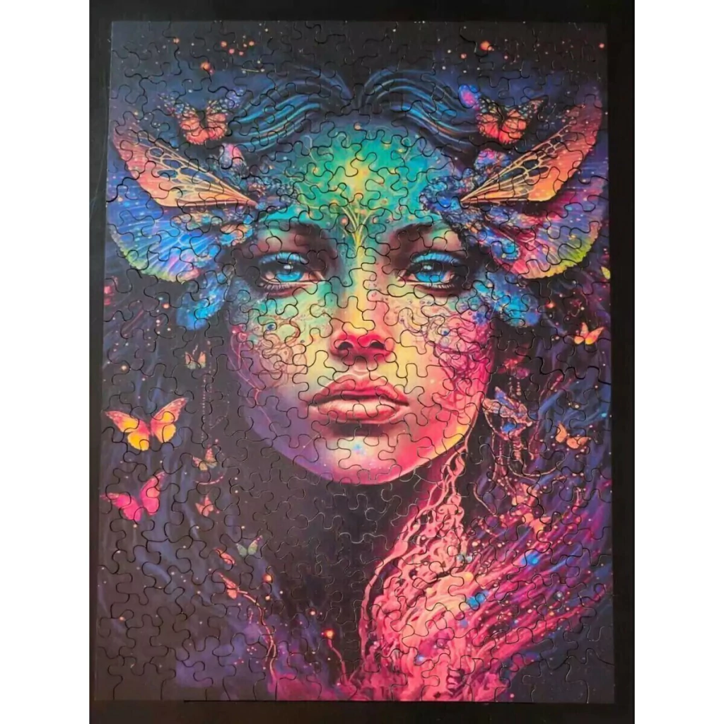 Es un rompecabezas de madera de 286 piezas confeccionado en fibrofácil de 3 mm.