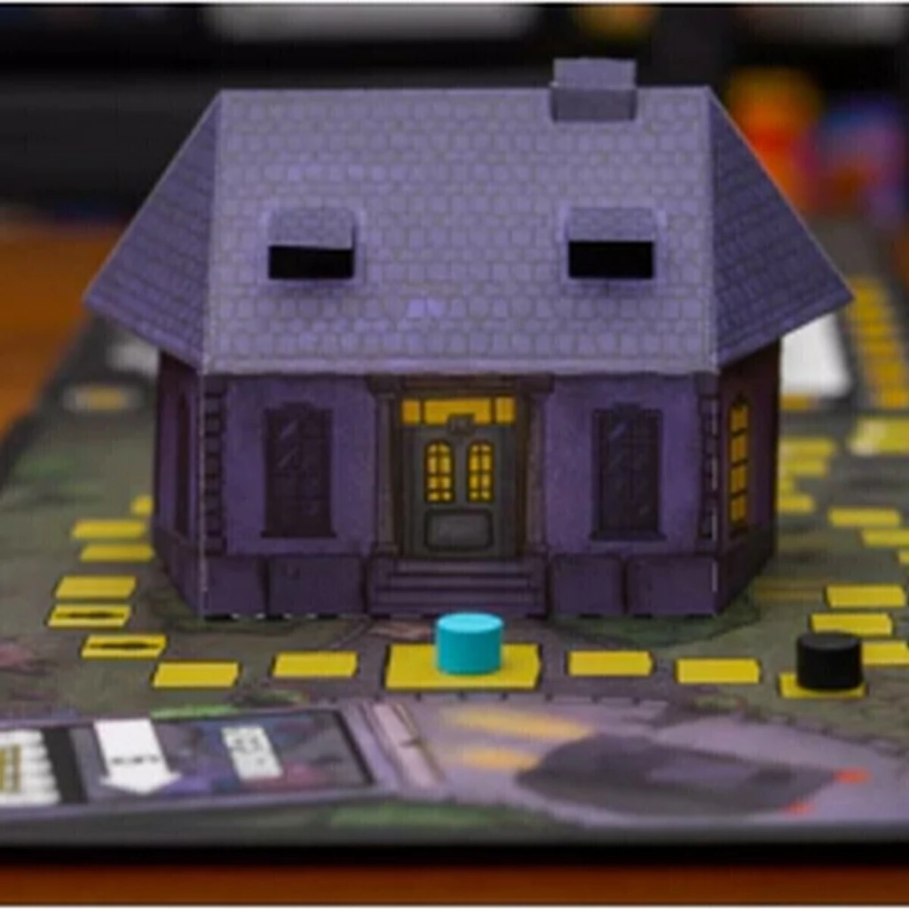 Las partidas se llevan a cabo sobre un original tablero desplegable con formato de libro y elementos pop-up. Una vez que el personaje consigue huir del hotel, las páginas del libro se suceden para revelar los nuevos escenarios en los que entran y en los que el asesino intentará alcanzarlos. Cuando dominen el juego básico, Refugio cuenta con niveles de dificultad superiores en los que el testigo deberá mirar atrás y descubrir tanto la identidad del asesino como información adicional para contribuir a la investigación.