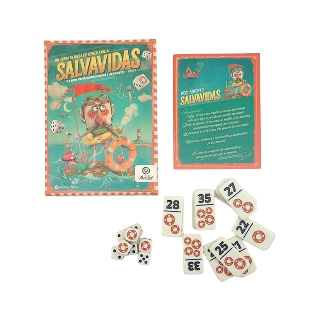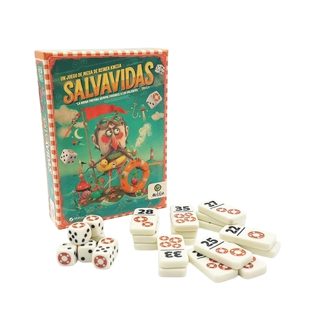 Salvavidas es un juego familiar de suerte y estrategia. En cada turno, los jugadores intentarán conseguir con los dados los números de las fichas para poder llevárselas… ¡incluso las que ya ganaron los demás!