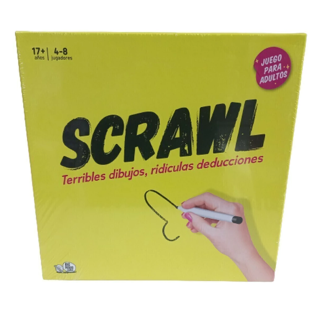 56 cartas con 224 escenarios, 8 tarjetas numéricas, 1 tarjeta de puntuación, tarjetas Scrawl, 8 marcadores, 8 clips, e instrucciones |