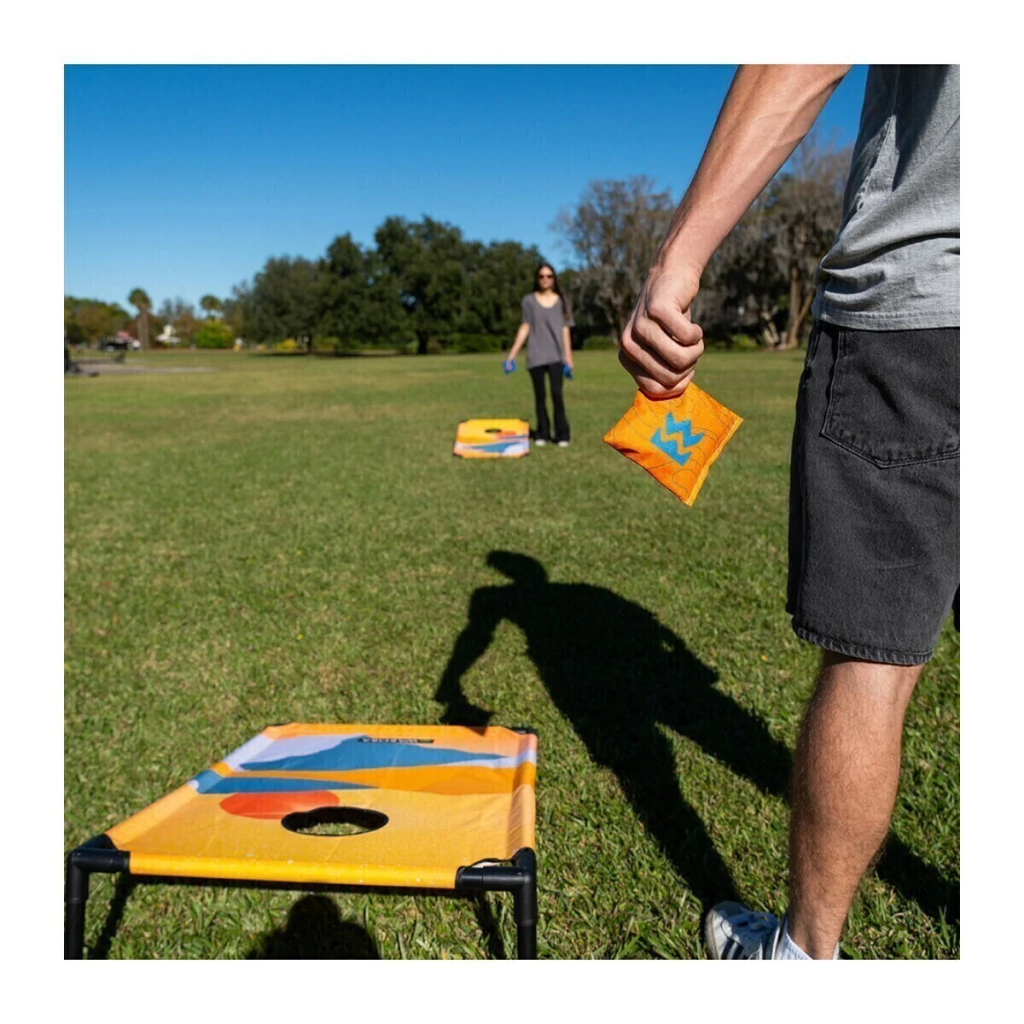 El Cornhole es un clásico juego de lanzamiento que combina puntería, destreza y mucha diversión. La dinámica es simple: lanzar las bolsitas de lanzamiento e intentar que entren en el agujero del tablero o queden lo más cerca posible para sumar puntos.