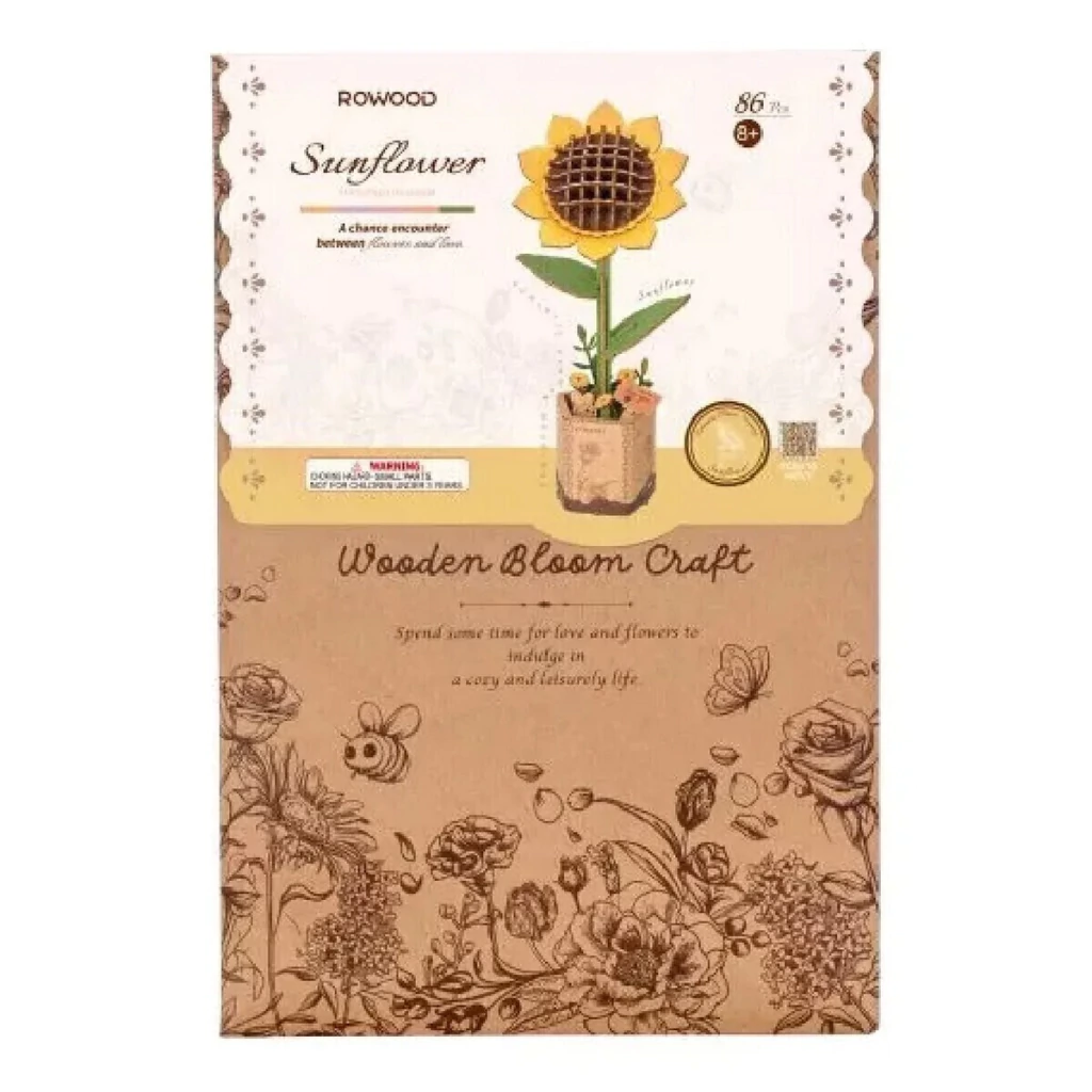 Es un puzzle 3D de madera para armar que recrea una delicada flor de girasol. Este modelo forma parte de la colección Wooden Bloom Craft y te permite construir paso a paso una flor decorativa que nunca se marchita. Incluye 86 piezas de madera precoloreadas que se ensamblan fácilmente sin necesidad de pegamento, resultando ideal tanto para quienes recién empiezan en el mundo del DIY como para quienes disfrutan de proyectos creativos y relajantes.
