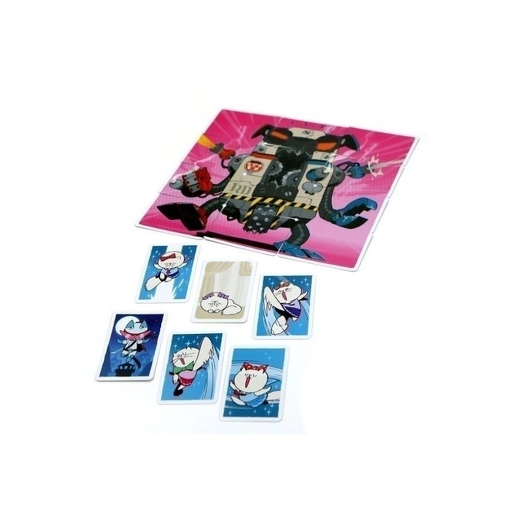 Super Cats es un juego de cartas rápido, adorable y salvaje. Armá tu equipo de Súper Gatos y luchá contra un perro robot (el RoboDog) comandado por los demás jugadores, para salvar al mundo gatuno de esta terrible amenaza.