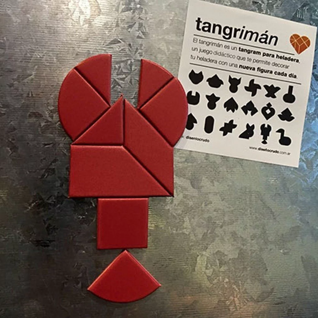 El Tangrimán es un tangram imantado para crear las figuras que quieras y pegarlas en cualquier lado.