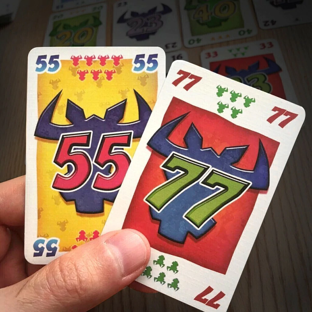Todos los jugadores a la vez juegan una carta boca abajo. La revelan y las van acomodando de menor a mayor en las hileras. Ese número que pensabas acomodar fácilmente en una fila, puede que se vuelva tu peor pesadilla cuando un rival juegue un número menor. El que sea vea obligado a colocar la sexta carta en una hilera, se lleva las cinco cartas anteriores, con todos sus toritos. Los toros de las cartas no son buenos. En este juego, el que al final tiene menos toros, es el ganador.