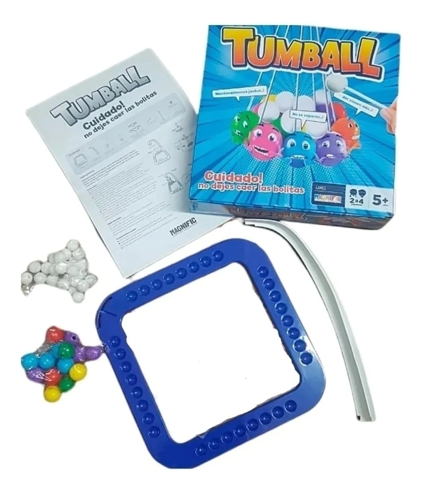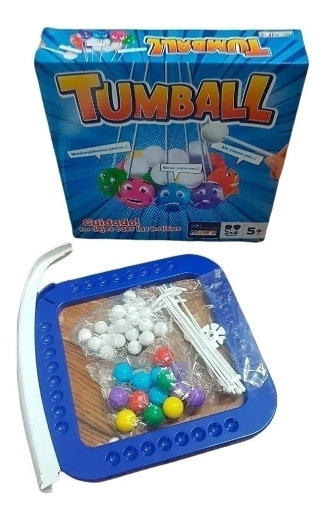 En Tumball no tenés que dejar caer las bolitas. Repartí las bolas blancas antes de empezar. En tu turno tomá una con la varita e intentá colocarla sobre las bolitas de colores. Túrnense usando habilidad y atrevimiento colocando cada bolita, una por una. Con cada bolita que agregues, el espacio entre las bolitas de colores se irá abriendo. Si se caen las bolitas blancas durante tu turno agregalas a tu colección. El primero en deshacerse de todas las bolitas, gana.