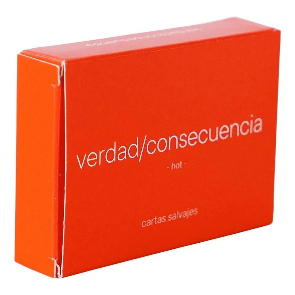 Verdad Consecuencia Hot es una expansión de Cartas Salvajes que incluye 50 cartas con 25 preguntas y 25 retros sobre sexo. También se puede jugar de forma independiente, aunque siempre recomendamos sumarlo al Cartas Salvajes porque si no vas a tener poquitas cartas.
