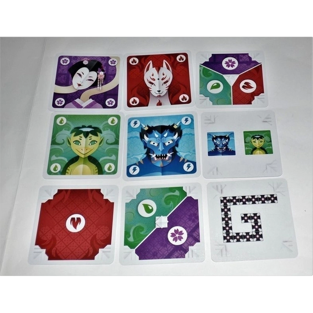 Los Yokai se dividen en cuatro familias. Están desordenados y ocultos. La misión de los jugadores es agruparlos por colores, sin que nunca estén a la vista.